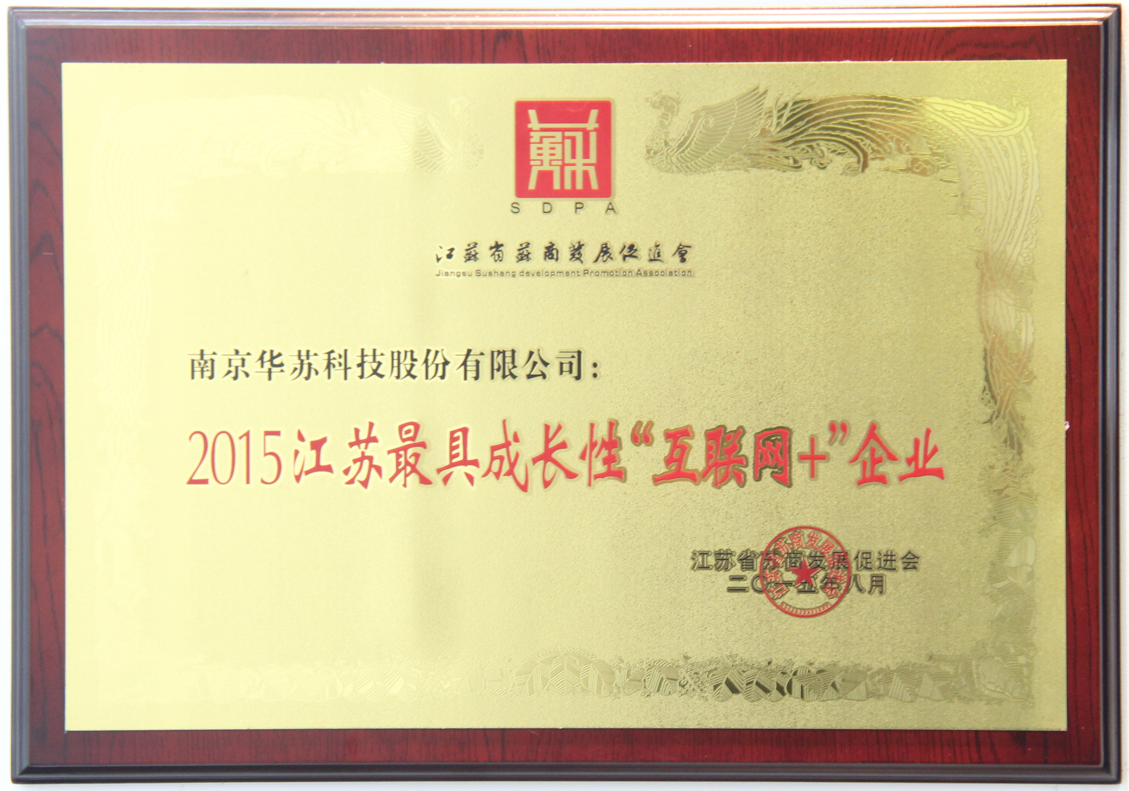 华苏荣膺“2015江苏最具成长性‘互联网+’企业”称号