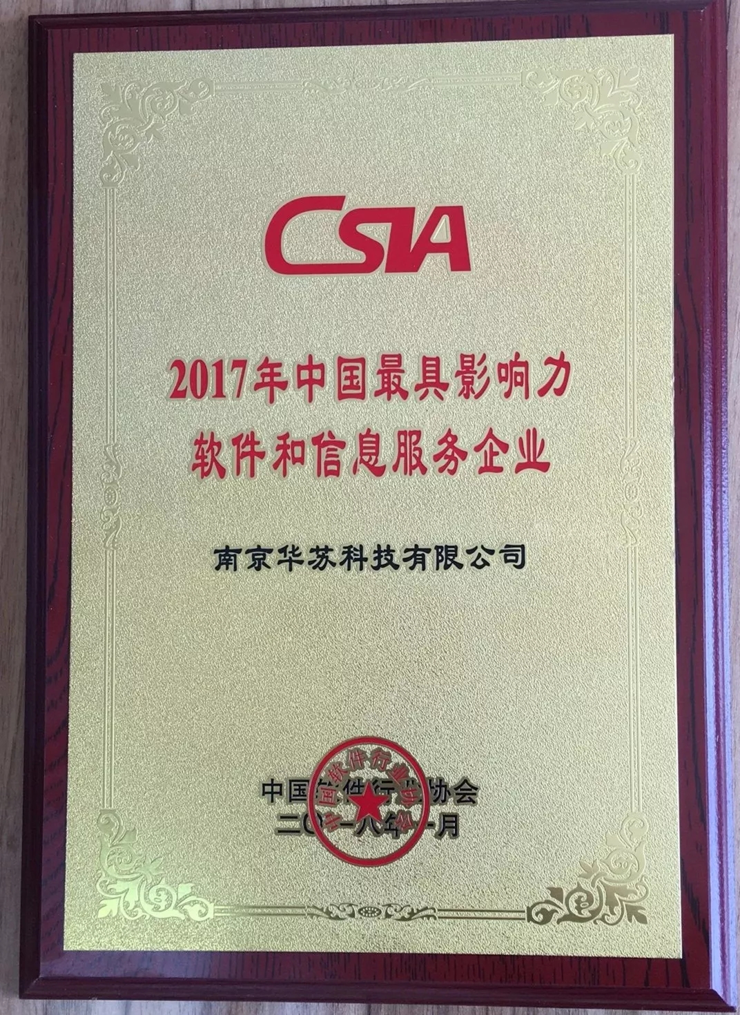 华苏科技荣获“2017年影响力软件和信息服务企业”重磅奖项