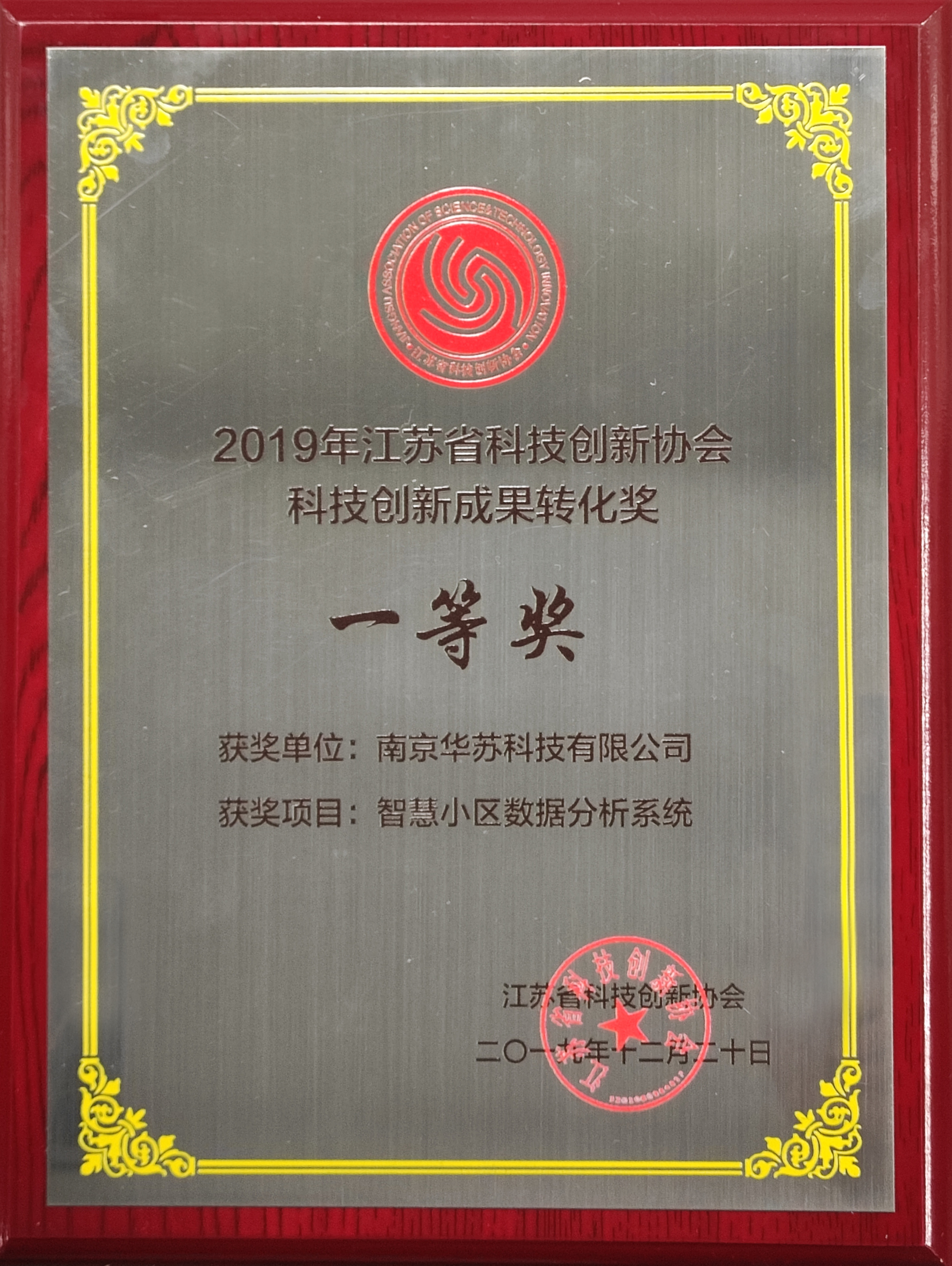 华苏“智慧小区数据分析系统”荣获2019年江苏省科技创新成果转化奖一等奖