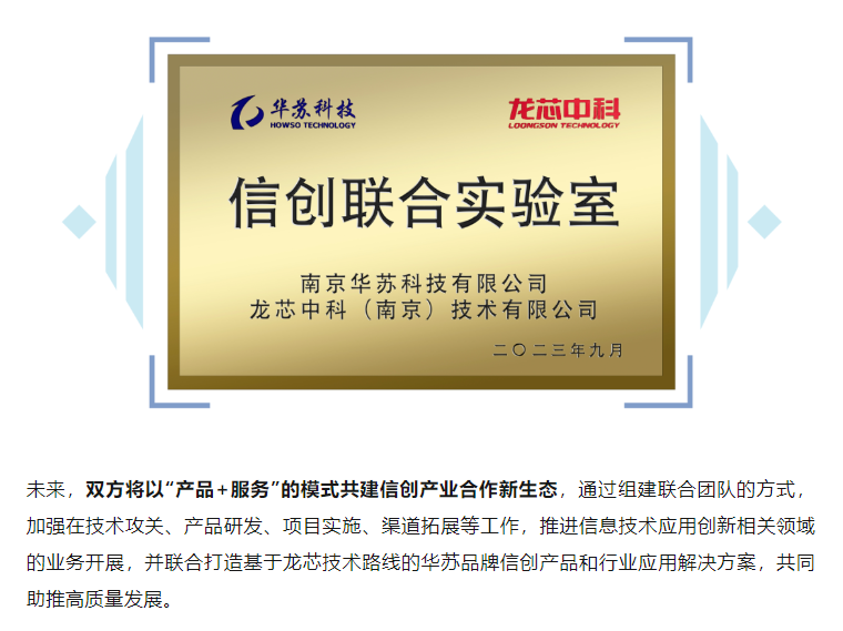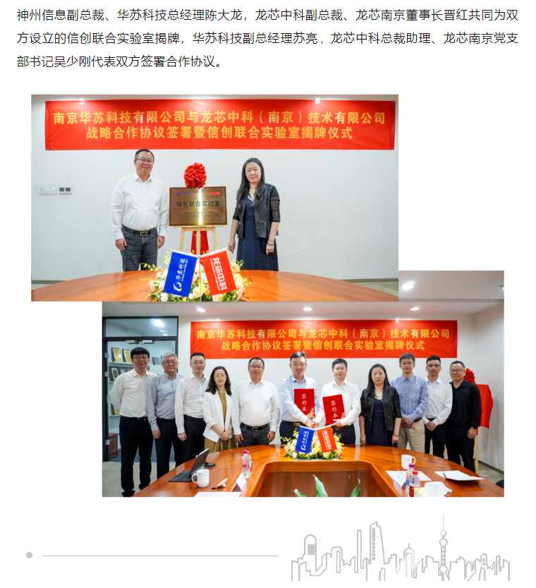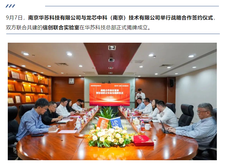 华苏科技与龙芯中科举行战略合作签约暨信创联合实验室揭牌仪式