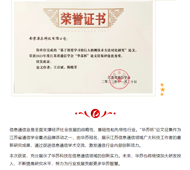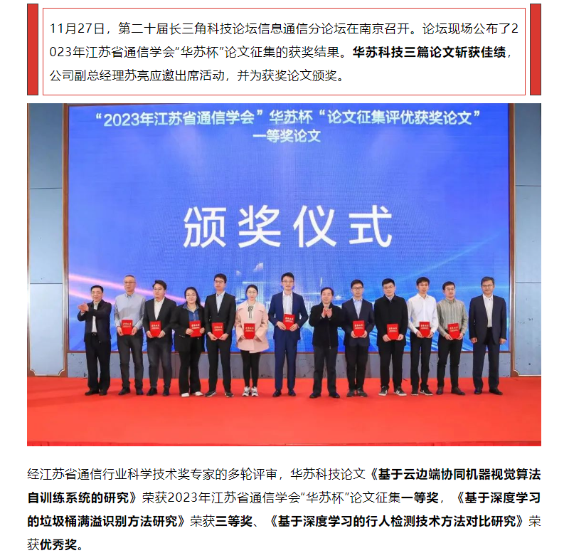 喜讯!华苏科技在2023年江苏省通信学会“华苏杯”论文征集中斩获佳绩