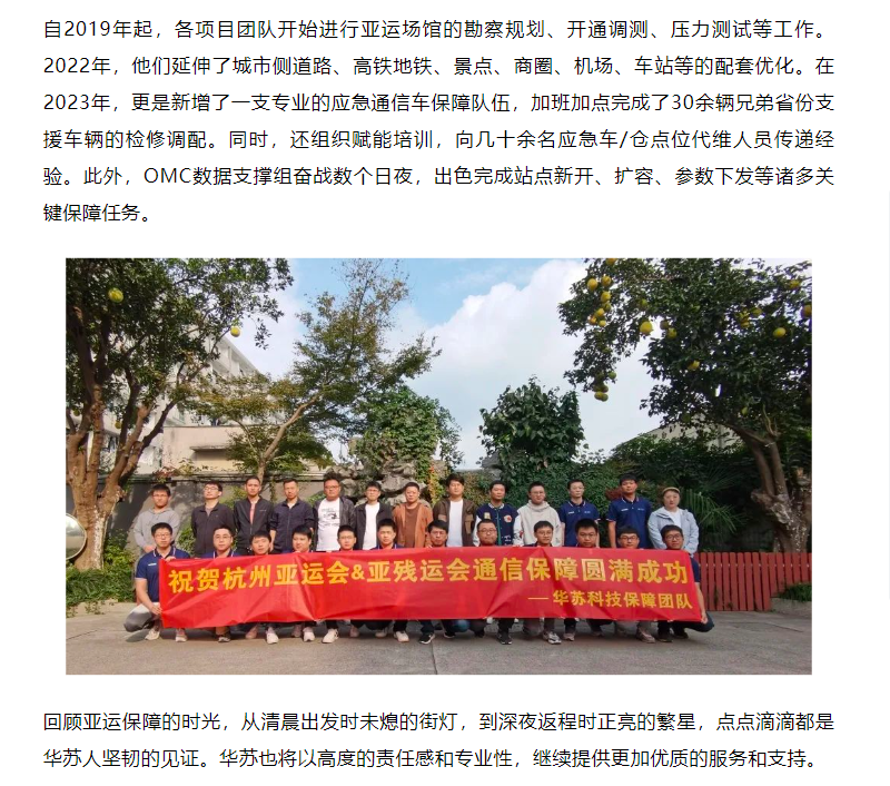 赢得赞誉!华苏科技通信保障工作再获客户认可