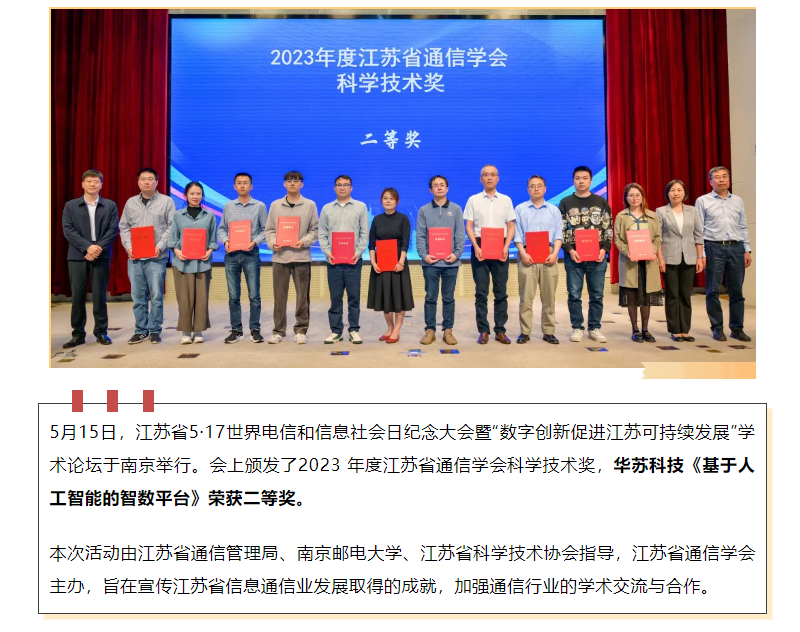 华苏科技荣获2023年度江苏省通信学会科学技术奖二等奖
