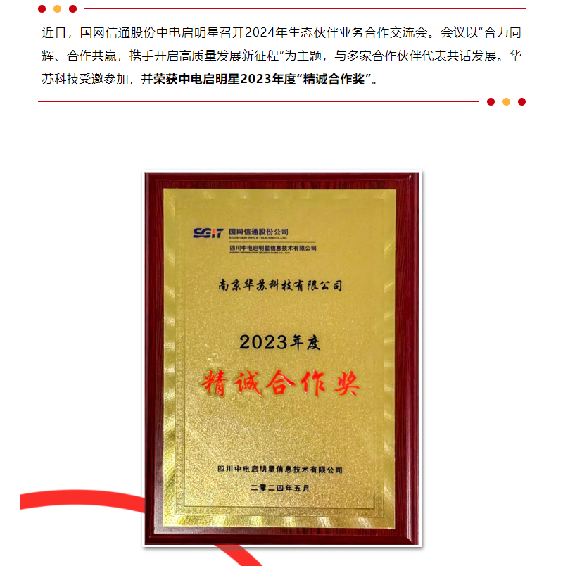 华苏科技荣获中电启明星2023年度“精诚合作奖”