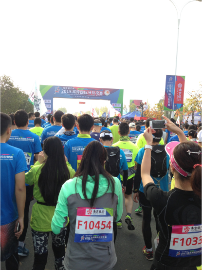 近日,“曼跑慢城·2015高淳国际马拉松大赛”于南京高淳区体育中心鸣枪开跑。本次赛事由中国田径协会、江苏省体育局、南京市高淳区人民政府主办,设有全程马拉松、半程马拉松和5公里健康跑三个组别,共有来自16个国家和地区的一万余名专业选手和业余跑友参赛。为挑战自我,华苏的几位成员也参与其中,面对眼前的漫漫长路,他们斗志昂扬,决心跑至终点!