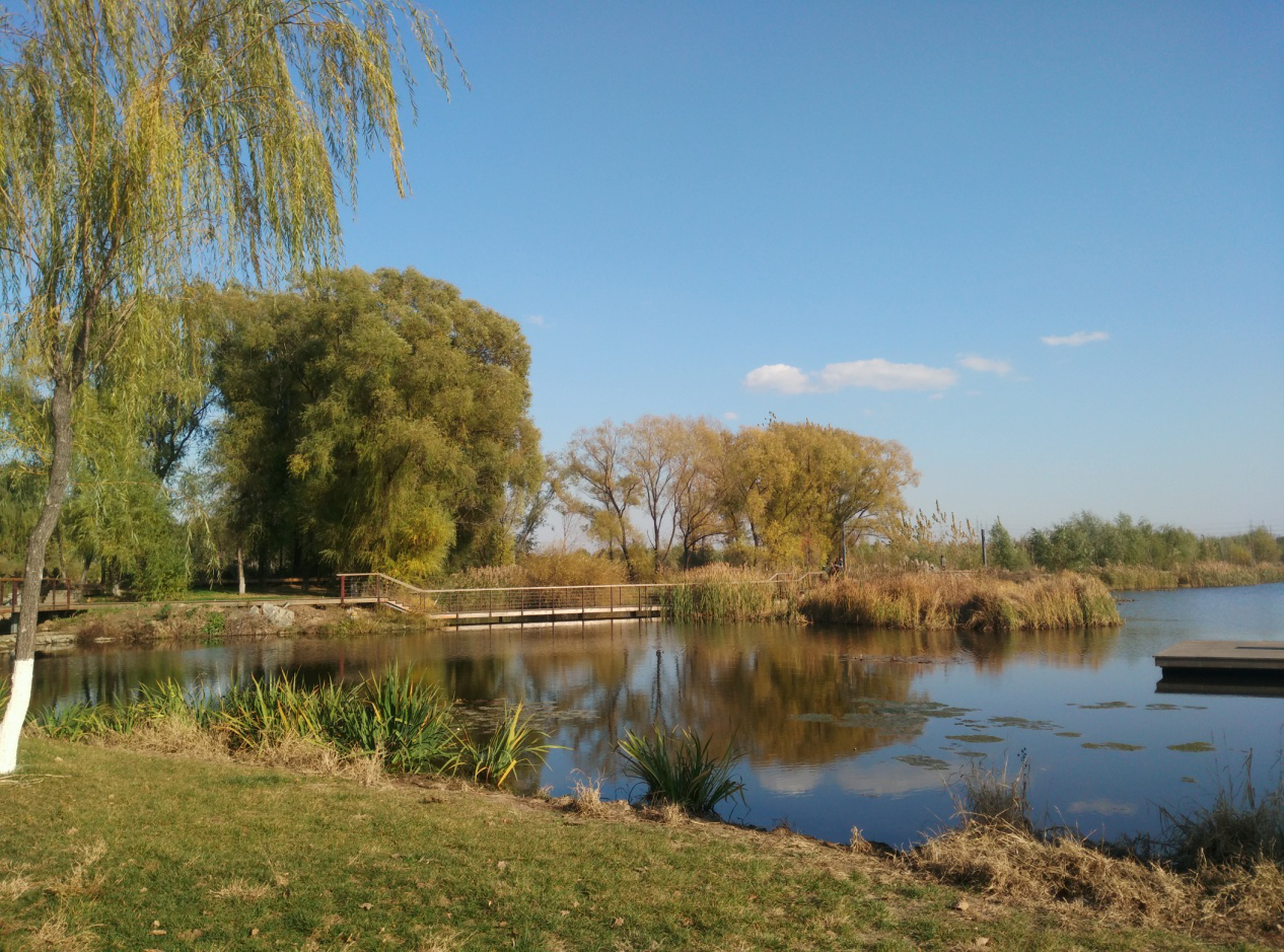 宠辱不惊,闲看庭前花开花落,去留无意,漫随天外云卷云舒。碧波随微风漾开,与蓝天相映成一色,一弯木桥盘旋于湖面之上,视野便随其蜿蜒展开,置身其中如置身画卷,如何不做感慨!