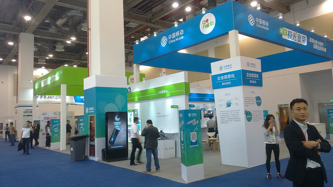 本届展会共计500家企业参展、展位数超1500个,使用面积达40000平方米。中国移动作为三大运营商之一,在众多展位中毋庸置疑地占据着重要位置。