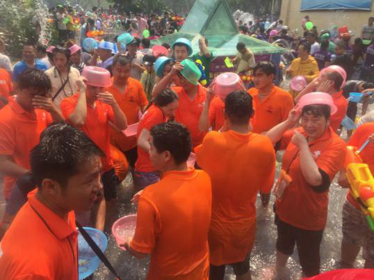 泼水广场上更是人头攒动,好不热闹!大家迫不及待地加入“混战”,不需要有目标,泼出去总能逮着几个。当地的风俗,被泼的越多代表你接受的祝福越多,大家互相泼水表示祝福并祈福风调雨顺,五谷丰登。
