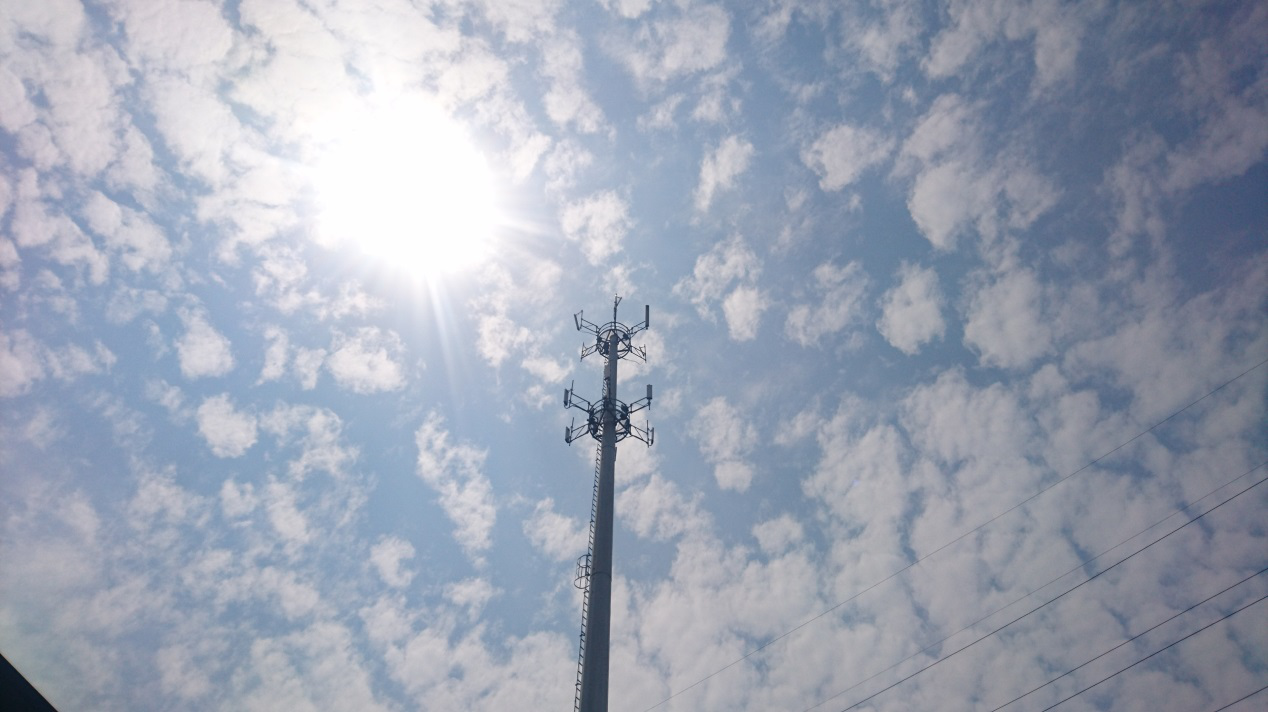 1、仰望天空,不是文艺,只是仰望那高塔的天线和正在调整的塔工。