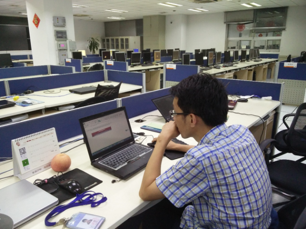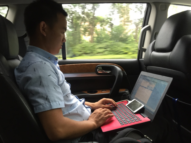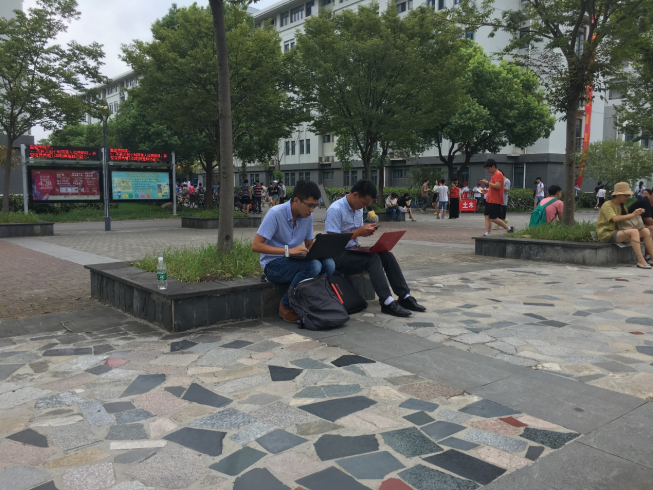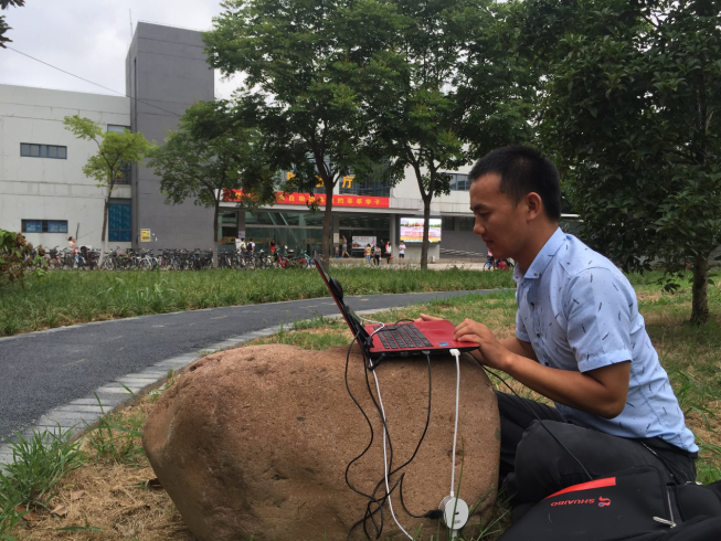 下午五点半左右,外场校园保障工作终于告一段落,他们和“东南大学”留影纪念后便匆匆赶回公司,开会探讨保障工作中发现的问题并研究对策,以及明天的工作安排。赶回的途中,杨军建说:“今天是阴天,时不时下点小雨,还是比较凉爽的。”乐呵呵的他,如此满足。