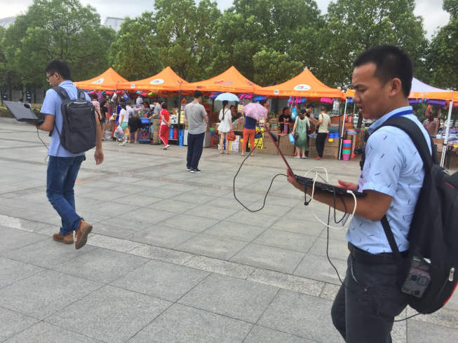到达目的地,两位外场测试工程师们便开始了对偌大校园的徒步负重测试。两人在联通营业点测试信号覆盖,他们的测试任务是3个联通营业点、2个营业厅、一辆应急通信车,上午、下午各测一遍,以确保最佳用户感知。