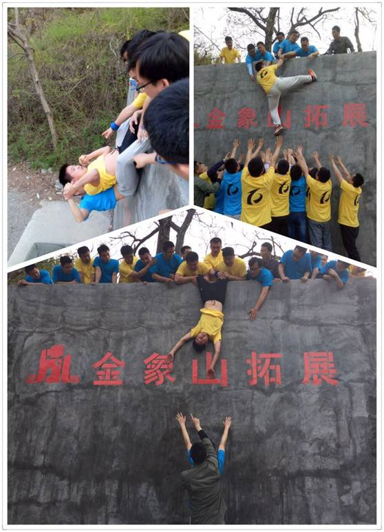 全队所有成员在规定时间内不能借助任何外界工具,在规定时间内翻越高4米光滑墙面。 此时,团队气氛达到高潮,人梯搭建,面对如此挑战,个个拼尽全力,被选为人梯的伙伴,肩膀被队友踩出了血印,但仍坚持到最后,没有落下一个队友,感恩的泪水伴着感动后的喜悦,以19分38秒的成绩成功翻越求生墙。 总结回顾、共同努力 拓展结束后,一季度会议如期举行,各项目经理对一季度的工作做出总结、分析和分享,并对接下来的工作提出新的目标和计划。力求通过大家的共同努力,打造一支充满正能量与战斗力的高效团队。