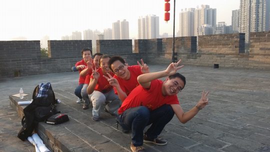 10月26日下午,本期“千人•狼”培训组织开展了“西安城墙户外拓展活动”。活动分为“暴走争雄、孤岛求生”等环节,全体参训员工组成四支英雄的团队,通过奋力拚搏,最终“西北狼”队获得全胜,赢得BOOS亲笔签名的篮球。